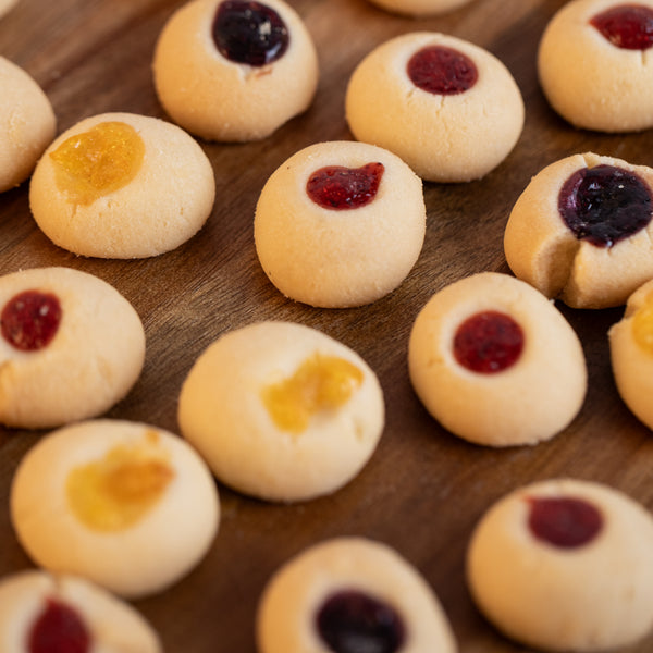 Our Egg-Free Thumbprint Cookies are crafted for everyone to enjoy, offering a melt-in-the-mouth texture paired with rich fruit flavors. Every bite combines the delicate crumb of a buttery cookie with the refreshing taste of real fruit filling.